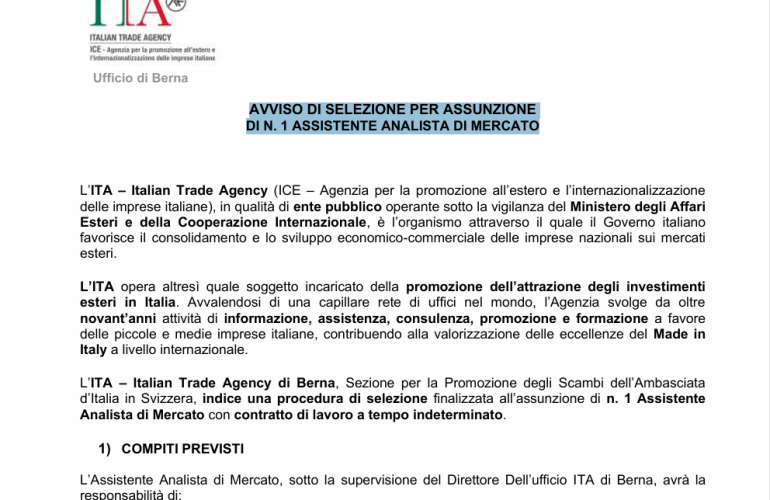 12 Mar Fonte: Fiammetta Benetton Istituzionali, Settoriali SvizzeraDa ICE-ITA bando di selezione per assunzione di un assistente analista di mercatoContinua a leggere