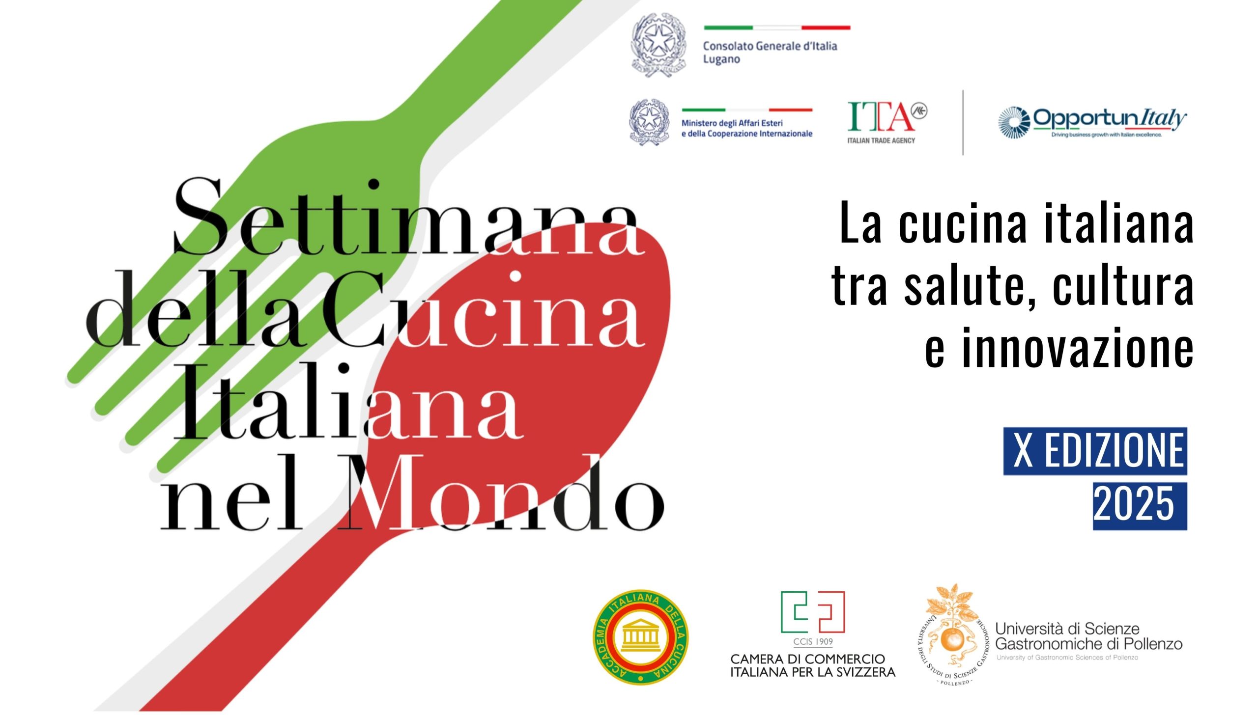Für diese X. Ausgabe öffnet das Italienische Generalkonsulat in Lugano, in Zusammenarbeit mit der Italienischen Handelskammer für die Schweiz, der Italienischen Akademie der Küche und der Universität Pollenzo, am Mittwoch, den 3. Dezember 2025 um 18:00 Uhr seine Türen zu einer Veranstaltung über: